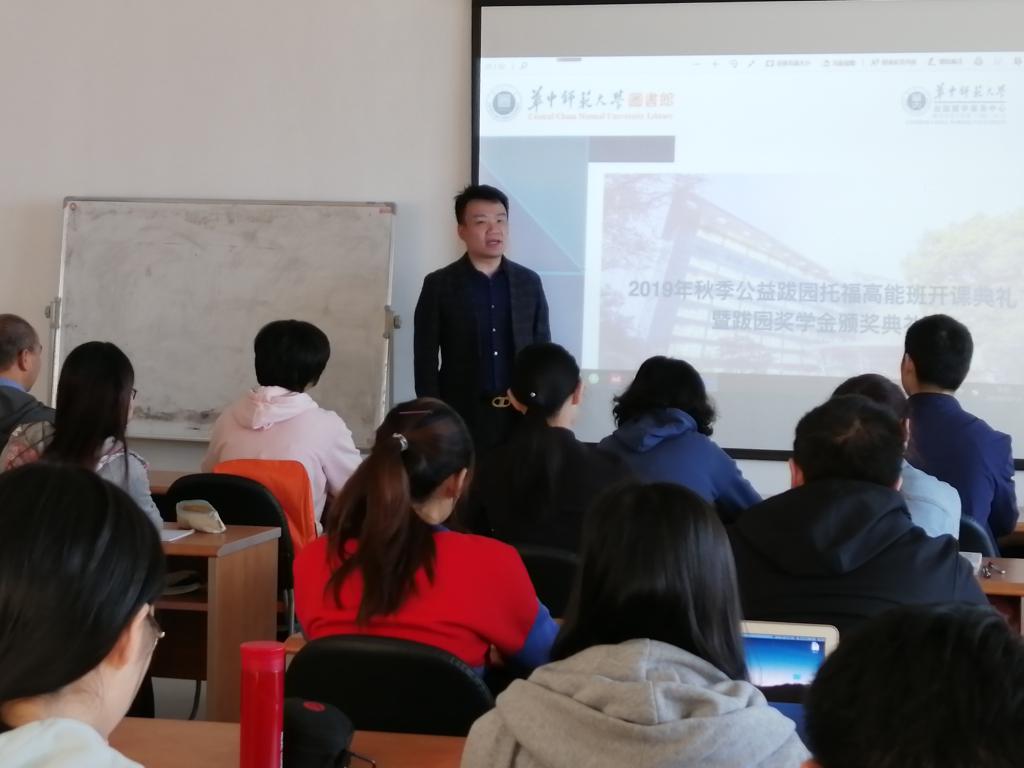 10月19日上午八点一刻,2019年秋季“跋园”托福高能班开课典礼暨“跋园”一期奖学金颁奖典礼在华师图书馆八楼“跋园”顺利举行。